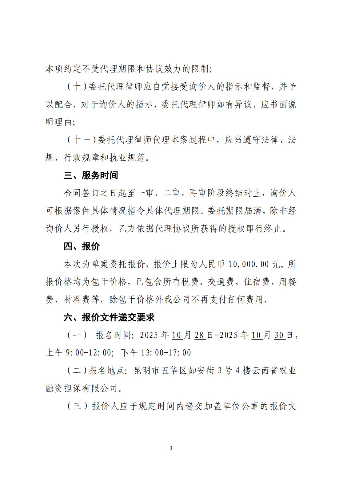云南省农业融资担保有限公司询价公告
